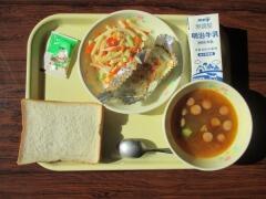 ご飯 牛乳 さわらのスタミナ焼き ニラ和風和え さといも汁