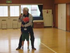 本日3校時、不審者が侵入してきたことを想定して、防犯避難訓練を実施しました。児童はマッスルタイム(持久走練習)の最中でしたが、不審者が侵入し、危険を知らせるホイッスルがなると、一目散に教室に避難できました。男子職員は「さすまた」をもって対応しました。その後、体育館で、下河戸駐在さんと氏家警察署スクールサポーターさんから、注意点や逃げ方などを教えていただきました。