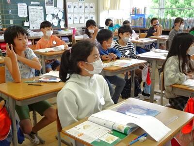 【3年生】1枚目の写真は、国語の「図書館たんていだん」の学習の様子です。どんな本がどの辺にあるのかをグループごとに調べました。本の探し方が上手になりました。