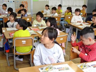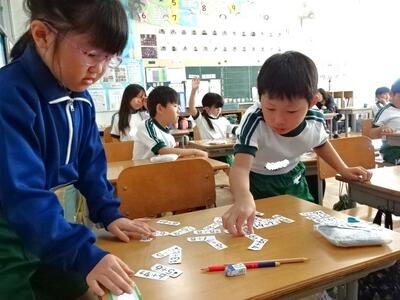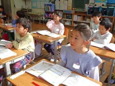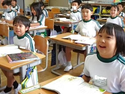 【1年生】1枚目の写真は、国語の「ことばをたのしもう」の学習の様子です。今日は、早口言葉で楽しみます。子どもたちは言えるようになるのが早いですね。難しい早口言葉にも、果敢に挑戦していました。