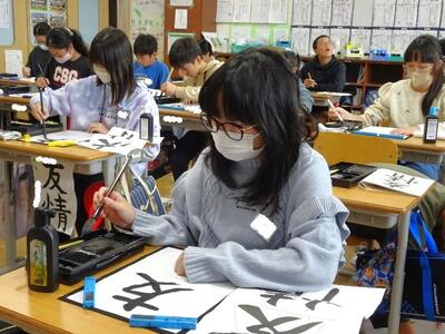 【4年生】1枚目の写真は、書写の時間の様子です。今日は、漢字同士の大きさを考えながら「白鳥」という文字に挑戦しました。とてもバランスをとるのが難しいのですが、果敢にチャレンジしていました。