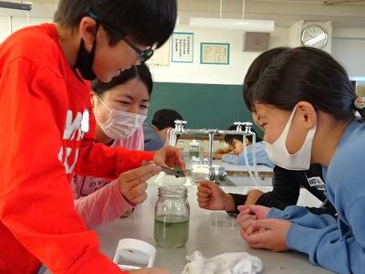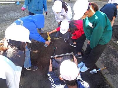 【5年生】1枚目の写真は、理科の「流れる水のはたらき」の学習の様子です。今日は、上流にある石が下流に行くまでにどうなるのかを、実験で調べました。角がとれてだんだん丸くなる様子に納得していました。
