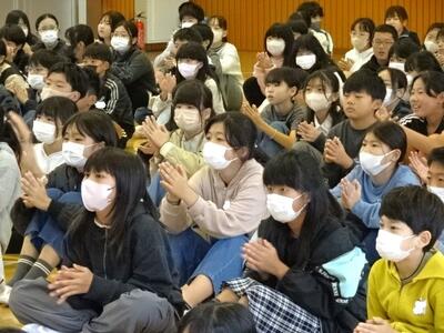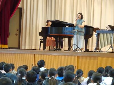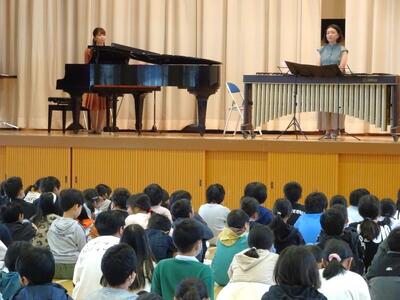 11月6日(水)に、打楽器とピアノのコンサートを実施しました。これは、さくら市教育委員会の文化芸術振興事業として企画してくださったものです。「剣の舞」や「タイプライター」、「となりのトトロ」など、子どもたちが知っている楽曲を演奏してくださいました。打楽器だけで演奏する曲もあり、音楽の奥深さに驚いていました。