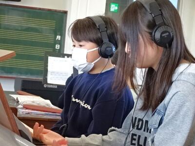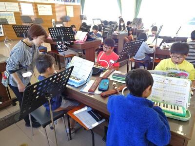 【6年生】1枚目の写真は、音楽の「豊かな表現」の学習の様子です。自分で楽器を選び、「カノン」を題材にしてアンサンブルを楽しみます。練習の表情も真剣で集中していることが分かりますね。