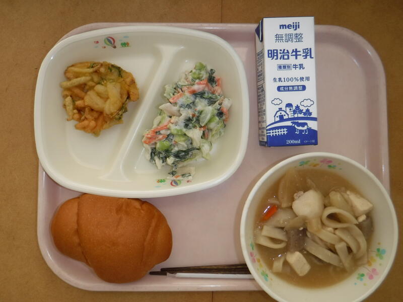 今日は良い歯の日です。イカ、切り干し大根、根菜などかみごたえがある食材をたくさん使いました。よくかんで食べてください。