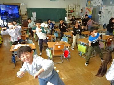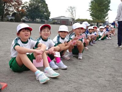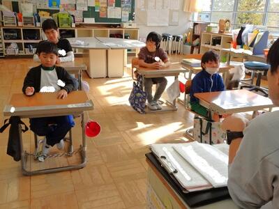 【1年生】今度の金曜日に、幼稚園生や保育園生をお迎えする1年生。いろいろな準備ができあがってきました。1枚目の写真は、もし時間が余ったときに見せるダンスの復習をしている様子です。運動会のダンス、よく覚えています。