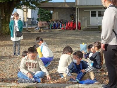 【2年生】1枚目の写真は、さくまいものつるを使ってリース作りをしている様子です。この時間の前には、畑に行ってさつまいも掘りをしてきました。さつまいも掘りとリース作りの様子は、後でお知らせします。