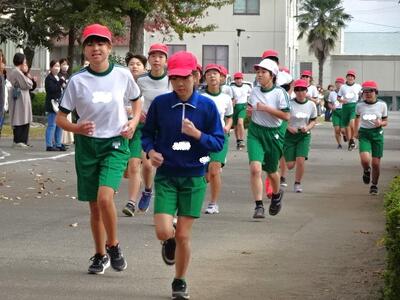 11月14日の校内持久走記録会の様子