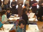 今日はすでに連絡したように4名の講師をお招きしての授業研究会の日でした。5校時に1年2組で国語科「たぬきの糸車」の授業を行いました。30名以上の先生方の参観でしたが、子どもたちは普段の一生懸命の姿で頑張っていました。