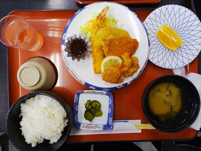 アクアマリンふくしまの近くのいわき七浜料理のお店で、昼食をいただきました。ミックスフライの料理です。朝が早かったぶんお腹もすいていました。
