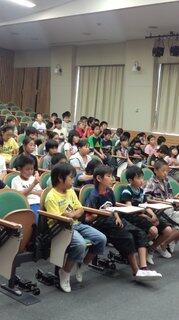 午後1時から、創立120周年記念下敷き用の写真撮影が行われました。カメラマンの方が、汗だくになりながら、整列用のラインを引いてくださったラインの上でVサインで記念撮影です。どんな出来映えになるのか楽しみです。9月4日(火)には、航空写真の撮影を予定しています。この時はさすがにVサインは写らないけれど、「プライド オブ 上松山」の心意気は写してみたいものです。
