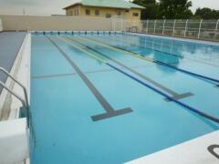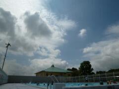 「本日8/6日(月)のプールは雨天のため中止になりました。」