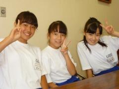職員研修が終わってふと校庭に目をやると、緑ジャージの二人連れを発見!!どうやら大登先生に会いに来たようです。二人は、吹奏楽部と書道部でがんばっているそうです。いつでも遠慮無く「母校」に遊びに来てくださいね。