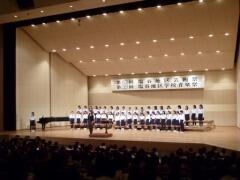 おめでとうございます。上松山小学校合唱部が県大会の出場を決定しました。18校が参加したB部門で、県大会参加8校に決まりました。どの学校も素晴らしい発表をした中での出場権獲得は素晴らしいことだと思います。塩谷地区の代表校として、県大会でも素晴らしいパフォーマンスを披露してくれるものと期待しています。子どもたちのがんばりに感謝、感謝です。