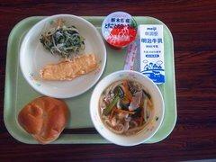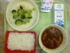 ハヤシライスは、少し酸味のきいたルーが、たっぷりのお肉やその他の具材にマッチしてとてもおいしいです。新じゃがはよく煮込まれ、ほっこり感が最高です。こんにゃくサラダは、ブロッコリーと枝豆の緑と、こんにゃくの白が、見た目にも食欲をアップさせます。県産のヨーグルト甘酸っぱさも最高です。