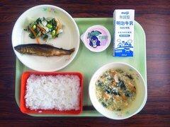 今日は、県民の日にちなんで栃木県の食材をたくさん使った献立です。あゆの甘露煮は、喜連川で採れたおいしい鮎です。かんぴょうサラダには歯ごたえの良いかんぴょうが入っています。栃木県は、かんぴょうの生産量日本一を誇っています。かんぴょうは夕顔の実をむいて干したもので、食物繊維が豊富です。栃木県のキャラクター・ルリちゃんが描かれている県民の日ゼリーは、県産のいちごがたっぷり入って、子ども達も大喜びでした