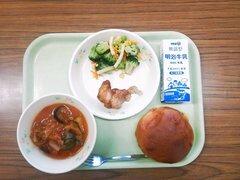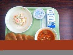ツイストパン ぎゅうにゅう とりにくのトマトに マカロニサラダ あじさいゼリー