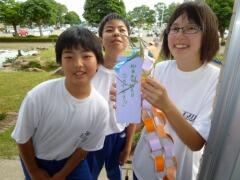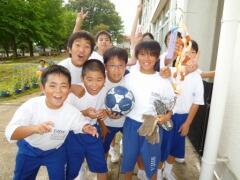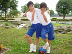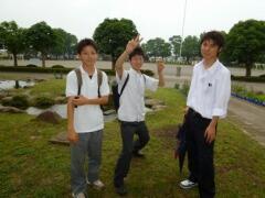 6月20日(水)の夕方、校庭で存在をアピールする二人組が・・・。「写真とるよ。」と声をかけると、少し照れくさそうにしながらも、急接近!!サッカーボールを持っていたので、当然サッカー部かと思いきや、バレーボール部と弓道部の二人組でした。