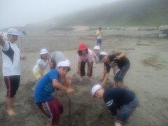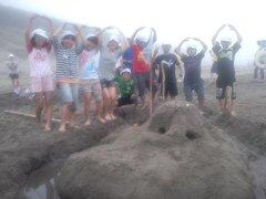 上松山小学校 砂の芸術大会グランプリ作品は、二班による『キノコのお城です