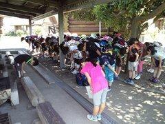 午後1時55分からの授業参観お世話になります。今日は、気温・湿度ともに高く、熱中症にかかりやすい状況です。保護者の皆様も、暑さ対策を十分されて、時間に余裕をもってご来校ください。校庭に駐車される際には、PTA総務部のみなさんや教職員の指示に従って駐車してください。暑い中での誘導ですので、ご理解・ご協力をよろしくお願いします。