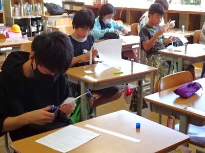 【2年生】1枚目の写真は、生活科の「うごくうごくわたしのおもちゃ」の学習の様子です。今日からおもちゃの作成が始まりました。いろいろと試しながら、自分のイメージに近づけていきます。