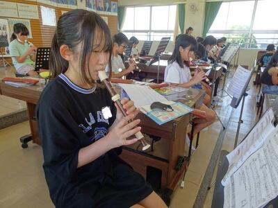 【4年生】1枚目の写真は、音楽の「めざせ 楽器名人」の学習の様子です。音楽室に入ったら、「もののけ姫」のリコーダー練習を熱心に行っていました。素敵な音色です。