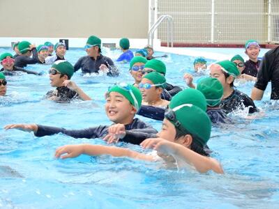 すっかり高学年用のプールに慣れた4年生。今年は、自分の目標を立てて、自分で目標にあったコースを選んで泳力の向上に努めました。