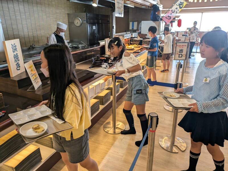 ホテルに到着し、すぐに夕食になりました。バイキングなので、子どもたちも大喜びです。