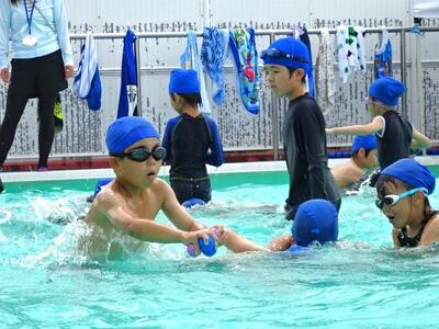【2年生】1枚目と2枚目の写真は、体育の「もぐる・浮く運動遊び」の活動の様子です。さすが2年生です。もぐるのは当たり前のようにできます。けのびもきれいなフォームでできています。