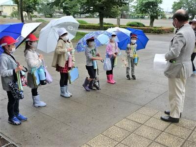 【2年生】生活科の町探検の本番です。今日は、子どもたちの引率のために12名のボランティアの皆様にも協力をいただきました。小雨の中、元気に出発した子どもたち、2カ所の見学場所をまわって、いろいろな話を聞いて帰ってきました。ご協力いただいた地域の事業者の皆様、本当にありがとうございました。