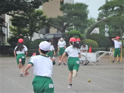 【1年生】今週は、新体力テストの測定習慣です。今日は、1年生はボール投げに挑戦していました。また、国語の時間には、「はなのみち」の音読発表会も行いました。