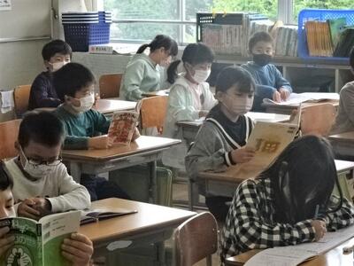 【3年生】3年生では、少人数指導が始まりました。3クラスの子どもたちを5つのグループに分けて、5人の先生で指導を行います。すると1クラスの人数がぐんと減って、授業の効率が高まるのです。子どもたちも、いつもと違う雰囲気で集中しています。