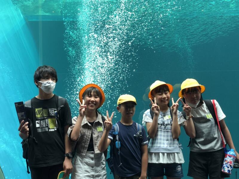 アクアマリンふくしまに到着しました。みんなとっても元気です。クラスごとに集合写真をして、班別の探索が始まりました。