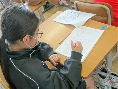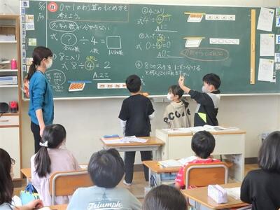 【2年生】1枚目の写真は、明日の遠足についての学習をしている様子です。グループを確認しています。今日は、どのクラスもバスの座席や準備物の確認などをしていました。子どもたちもとても楽しみにしています。