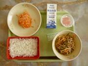 今日は1月最後の給食です。とりのてんぷらというのは聞き慣れない感じですが、鶏肉のてんぷらも美味しいものですね。切り干し大根の煮物、いい味が出ています。ごはんにぴったり、食が進みますね。県産のかんぴょうがふんだんに入ったみそ汁も具だくさんでした。2月も美味しい給食が楽しみです(^_^)v