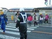 今日は3年生が社会科の学習で警察署と消防署の見学です。雪が降ってきました!!まず警察署の報告から〜