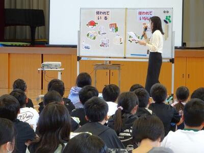 【4年生】1枚目の写真は、社会科の「ごみはどこへいくの」の学習の様子です。今日は、リサイクルの大切さについて学びました。ゴミとして捨てた物が新たなる物になることに驚きです。