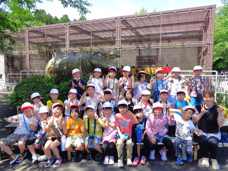 現在1年生の教室(廊下)に掲示されている作品です。「遠足の思い出」です。