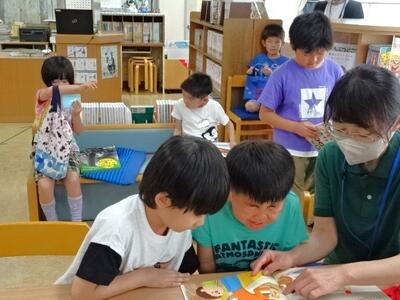 【2年生】1枚目の写真は、図画工作の「ふしぎなたまご」の学習の様子です。不思議なたまごを半分に切って、生まれた物と一緒に台紙に貼っていきます。仕上がりが楽しみです。