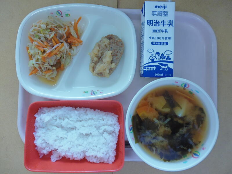 今日から5月です。今月の給食目標は「良い食事のマナーを身につけよう」です。今のみなさんの姿勢はどうですか?良い姿勢で食べると、食べ物の消化が良くなります。良い姿勢でお皿やおわんを持って食べましょう。