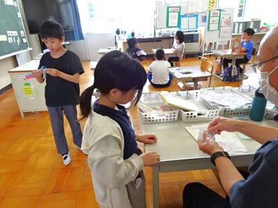 【4年生】1枚目の写真は、社会科の学習の様子です。今日は、バンダイスピリッツさんが学校に来てくださり、プラモデルの切り取った部分をリサイクルして定規に生まれ変わる瞬間を体験させていただきました。貴重な学習になりました。体験学習の様子は、あとでHPに掲載します。