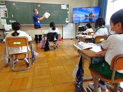 【5年生】1枚目の写真は、社会科の「あたたかい土地のくらし」の学習の様子です。寒い土地や高い土地の学習が終わり、今は暖かい土地として沖縄県を取り上げて学習を進めています。