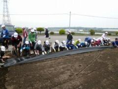 春の季節の深まりとともに夏にかけて咲く花、取り入れる野菜等の種まき、苗植えが始まります。米づくりについては以前より報告をしていますが、学校の東側に程よい学校畑があります。各学年の区割りで、教科また学年の創意によって野菜等が栽培され、観察活動や収穫などを実施する予定でいます。今日は初日で6年生がジャガイモを植えました。種イモは私の認識不足でしたが、半分に切ることなく(昔の話ですみません)すでに芽が出ているものが用意されているんですね。北海道産ということでジャガイモの観察もさることながら、収穫が楽しみです(*^_^*)
