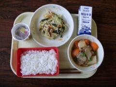 麦ご飯 牛乳 納豆 肉じゃが かいそうサラダ