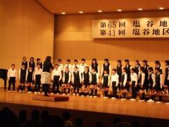 本日24日(水)、塩谷地区学校音楽祭が矢板市文化会館において開催されました。本校からは5,6年生40名が参加し、「 MIDORI ~繋がる輪~ 」を熱唱しました。音程・リズム感はバッチリでした。どの学校もよく練習している様子が窺えました。