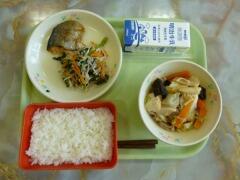 献立名:ごはん ♡牛乳 とろあじ一夜干し 野菜と生揚げのみそ炒め うめあえ
