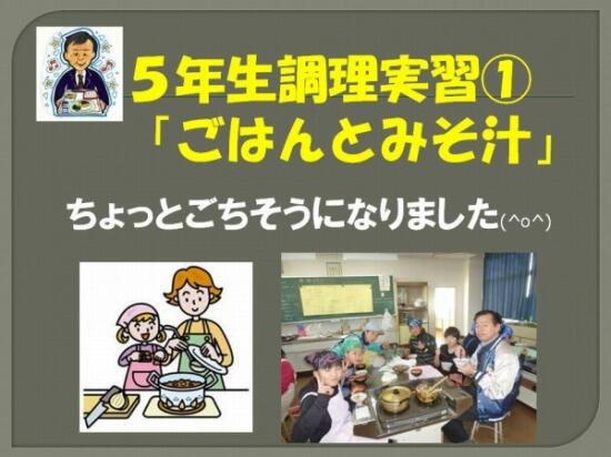 昨日から家庭科担当が昆布、味噌などを用意しています。尋ねてみると今日は家庭科の調理実習(5年1組)でした。米は米プロジェクト産のものを使用、野菜は各自持ちよりということで地産地消の要素もあります。完成間近に訪問してちょっとごちそうになりました。ごはんはホクホク、みそ汁は油揚、大根、にんじん、ねぎとベイシックみそ汁でした。(いただいた班)ごちそうま、美味しかったです。給食も完食で満腹感100%です(>_<) 次回は2組にごちそうになります。