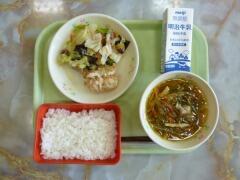 献立名:ごはん ♡牛乳 やさいいため あげぎょうざ くきわかめのちゅうかスープ