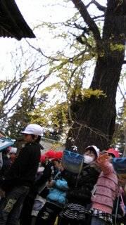 樹齢六百年の大イチョウです。興味津々です。根っこもすごい!