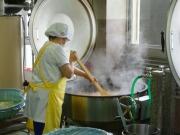 本校は4人の調理員さんで約440食の給食を作っています。(1)今日のメニュー確認 (2)準備 (3)調理 (4)配膳 (5)片付け (6)明日の確認 等目まぐるしい毎日です。特に写真でもわかるように調理は大変重労働な場面もあります。大きなしゃもじでかき混ぜる様子を見てそう思いました。あらためて感謝をしながら給食をいただきたいと思います。